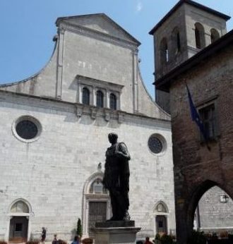 In copertina, la loggia municipale con la statua di Giulio Cesare e il duomo.